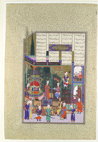 This painting, "The Beggar who Professed his Love for a Prince," is from a manuscript of Farid al-Din `Attar’s "Language of the Birds". The architecture and figures are arranged within a strict, orthogonal grid, flattening the composition. Notice how the palette is subdued, with ochre and muted blues, greens, and oranges dominating. The artist's formal placement of figures does more than simply illustrate the story, it invites us to consider the interplay between structure and narrative. How does the formal arrangement underscore themes of hierarchy and order within the story? The formal qualities of the painting challenge us to think about how order is imposed and perceived. Consider the architecture, with its precise geometry and symmetrical design, it serves not just as a backdrop but as a framework that mirrors the structured social order depicted. The architecture and its forms act as signs of wealth and power, contrasting with the beggar's form.