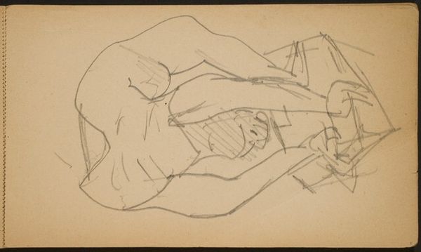Editor: So, here we have Denman Waldo Ross's "Nude Sketch of David with Mirror Reflection," a pencil drawing at the Harvard Art Museums. It feels very academic, like a study, but the figure also seems introspective. What do you see in this piece? Curator: I see a challenge to the traditional male gaze. Ross, likely working within the established norms of his time, presents a nude male subject, yet there's a vulnerability in the pose and the mirrored reflection that complicates the power dynamic. Do you think the figure is empowered or disempowered? Editor: I hadn't considered that perspective. The vulnerable pose does make me rethink my initial assumptions. Curator: Exactly! And the mirror invites us to consider the act of self-representation and how identity is constructed, even in a seemingly straightforward sketch. Perhaps we are not just looking at David, but also at Ross and his own artistic process. Editor: This reframing really opens up the work for me. Curator: It encourages us to question power structures and the inherent biases within artistic traditions.