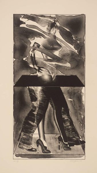 Curator: Here we have Harold Edgerton’s photograph, simply titled "Trampoline", housed here at the Harvard Art Museums. Editor: It feels like a visual echo, or maybe a dance captured in fractured time, a leap into the void, almost haunting. Curator: Edgerton was a pioneer of stroboscopic photography, freezing motion in a way that revealed hidden moments. Think of it: before this, we couldn't truly *see* the arc of a jump like this. Editor: It’s amazing how such a technical approach can create something so poetic. I see the human form deconstructed, the layers of movement as ghostly apparitions. Curator: The high contrast emphasizes the physical strain but also, dare I say, a sense of liberation from gravity. Editor: Yes, the white figure against that black abyss feels transcendent, an ascent that leaves behind the mundane. I’m left pondering this image, what can be revealed in these slices of a single, passing moment. Curator: Exactly. The layers suggest a story, a journey.