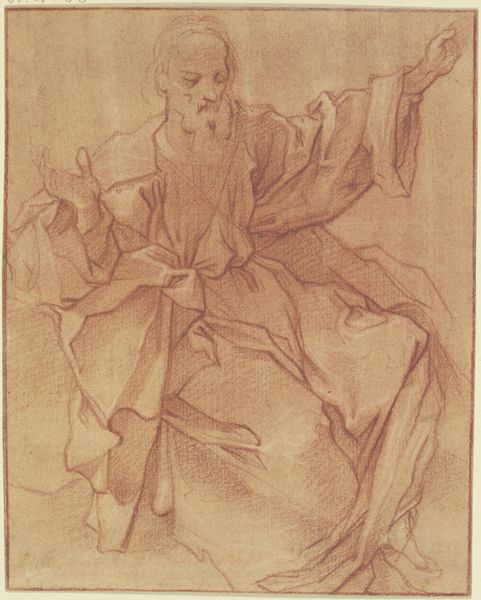 Rembrandt van Rijn created this drawing of ‘God the Father Supported by Angels’ with pen and brown ink on paper. It may seem a simple sketch, yet the materiality speaks volumes. The choice of a reed pen, rather than a metal nib, allows for a broad, expressive line, capturing the divine scene with immediacy. Look at the varying pressure: thick strokes define the figures, while delicate lines suggest movement and light. The brown ink, likely iron gall, adds warmth and depth, aging beautifully over time. The absorbent paper fibers further enhance the ink's texture. Consider the rapid, confident strokes and minimal use of materials. This drawing wasn't about lavish display. Instead, it emphasizes the artist’s skilled hand, and the cultural value placed on the direct, unmediated expression of an idea. It's a powerful reminder that art doesn't always need elaborate means to convey profound meaning.
