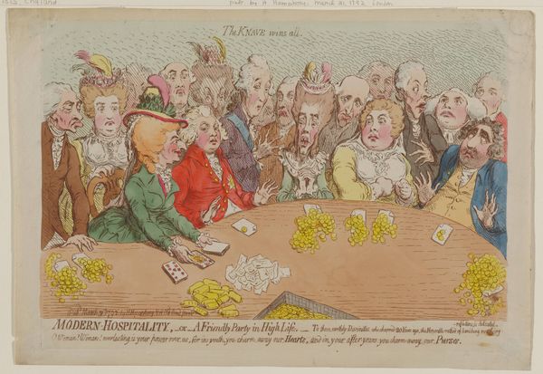 This print, by Charles Williams, is a promotional image for the “Caricature Magazine.” It offers us a glimpse into the world of early 19th-century British satire. The figures depicted, with their exaggerated features, embody the visual language of caricature. The central figure speaks directly to us, "Ladies and Gentlemen," as if from a stage, inviting us to engage with the magazine’s offerings. This theatrical framing draws attention to the performative nature of satire itself, which often holds up a mirror to society. Consider how the images around the central scene highlight the magazine's content. Satire has historically been a tool for social commentary, often skewering political figures, class distinctions, and cultural norms. But it is also deeply rooted in personal experiences and beliefs. The success of such a magazine depended on its ability to connect with a broad audience, making them laugh, think, and perhaps even question the status quo.