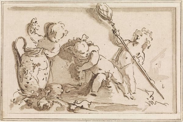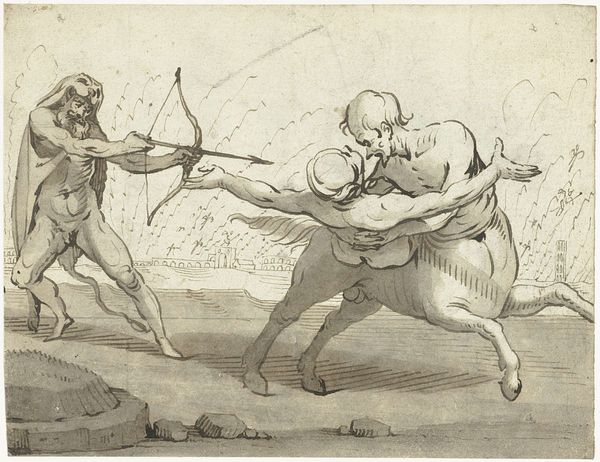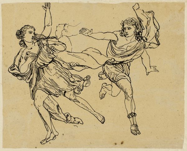 Nicolai Abildgaard created this pen and brown ink drawing, ‘A woman with a stick, which she raises towards two small boys who are about to fight’, during the late 18th or early 19th century. Abildgaard lived through the Age of Revolution, a period marked by radical shifts in social and political orders. His art often engages with themes of morality, justice, and social order. Here we see a scene of domestic intervention: a woman, presumably a mother, is stopping two young boys from fighting. The artwork touches upon the gendered roles within the domestic sphere. The mother figure, armed with a stick, steps in to enforce peace. The image allows us to consider the intersection of gender, class, and behavior within the context of 18th-century social norms. Abildgaard’s choice of subject matter offers insight into the values and concerns of his time, inviting viewers to reflect on the dynamics of power, discipline, and social expectations.