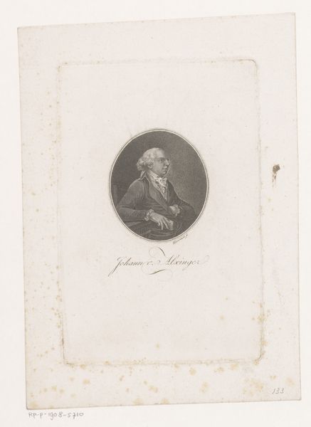 Editor: This is an engraving from 1788 of "Portret van Karel van Brunswijk-Wolfenbüttel" by Karl Schröder. It gives off this very formal, almost austere vibe. What's your take on this piece? Curator: The formality is palpable, isn't it? But it’s so much more than just a stiff portrait. Think about the late 18th century – the Enlightenment, the rumblings of revolution. These portraits of nobility become documents in a deeply unequal power dynamic. Who had access to representation? Who controlled the narrative? What is absent from this image? Editor: That’s a good point. It feels so…removed from any kind of social context just looking at it now. The individual feels isolated. Curator: Exactly! And that isolation is key. It represents the gilded cage of the aristocracy. Notice how the crisp lines of the engraving style contrast with the softness of his ruffled collar. It's a deliberate aesthetic choice, mirroring the tensions of the time, clinging to formality, but challenged by nascent ideas of equality and the rise of the individual. Also, the portrait seems to deliberately invoke the visual vocabulary of classical antiquity...why? Editor: To suggest he is of the ruling class? Curator: Indeed. Neoclassicism visually tied the sitter to legacies of power. Consider also how gendered the practice of portraiture was! Editor: So, this isn't just a portrait of a duke, but a statement about power, privilege, and the fragility of the old order during a time of massive upheaval. I see it so differently now. Curator: Precisely! It's about unpacking those layers of meaning. These images participate in a complex and critical discussion of class and historical forces. It invites us to challenge assumptions and broaden our perspectives.