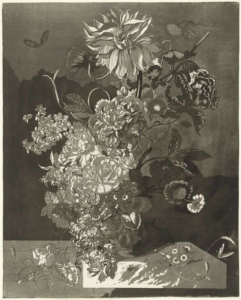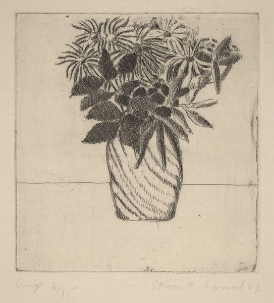 Lionel Lindsay made this print of Zinnias using etching. Look at how Lindsay works with the monochrome palette here, it’s almost like he’s composing a song. See how he creates depth and texture? It's all in the mark-making – a real dance of light and shadow. When I look at these flowers, I see a carefully crafted arrangement. The petals of each zinnia are defined by these incredibly fine lines. It’s as if each petal is a tiny, intricate world of its own. See that one zinnia at the top, how it seems to be reaching out? The meticulous etching suggests a dedication to capturing the fleeting beauty of nature, a theme reminiscent of the still lifes by artists like Rachel Ruysch. Thinking about the work of an artist like Vija Celmins, known for her meticulous drawings of natural forms, invites us to consider how artists find new ways to represent the world around them through different mediums. It is interesting to see how two artists are playing with the same idea in different ways. Art is an ongoing conversation, a play of ideas echoing through time.