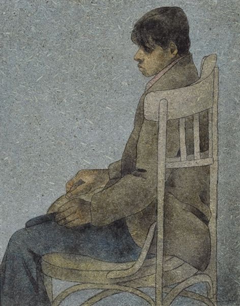 Curator: We're looking at a drawing, "Boy In Red Jacket," by Louay Kayyali. It appears to be rendered with colored pencils and other drawing media on paper. What’s your first impression? Editor: Immediately, I’m struck by the quiet melancholy radiating from the boy. His posture, slumped slightly, speaks volumes, and that gaze… it’s averted, heavy with a sense of burden. Is it meant to capture the inner experience of childhood amidst social constraints? Curator: Absolutely, that somber affect is really key. I think there’s something poignant about the universal visual shorthand here too; the red jacket as an emblem—perhaps of youthful energy, but juxtaposed with his subdued expression it carries so much more emotional resonance. It’s almost like a cultural memory is embedded in that choice. Editor: I agree. Red often carries symbolic weight in different cultures—passion, revolution, danger. Here, though, it feels muted, almost resigned. Look at the historical context Kayyali was working in, especially concerning childhood. Are we seeing the social restrictions, even oppressions, weighing on this young figure? Curator: Precisely. And the medium reinforces that effect, doesn’t it? The texture of the colored pencil, the layering, creates this almost tactile sense of vulnerability. It’s not idealized. The symbolism of childhood disrupted is powerful. Editor: Definitely disrupted. And let's consider that seat he's sitting on. It speaks to domesticity, waiting... but it could suggest something larger. Perhaps an entire social class confined by expectation? A commentary on a lack of agency? It speaks to broader intersectional conditions. Curator: I love that observation, situating this portrait beyond the individual. And consider the overall palette, how it contributes to this feeling. Everything seems slightly muted, a world worn down by something unseen but felt deeply. Editor: Yes, and I wonder about the untold story behind this child. The composition directs our gaze downward, creating an unsettling power dynamic where the viewer is complicit in overlooking him. His eyes meet us, not in invitation but as confrontation. Curator: Fascinating. Thinking about the cultural narratives at play shifts everything. Kayyali manages to capture that silent weight. Editor: It's more than just weight—it’s a silent defiance, maybe. Or simply awareness. It’s there in the choice of rendering an individual, so realistically… almost challenging us to forget him, even for a moment.