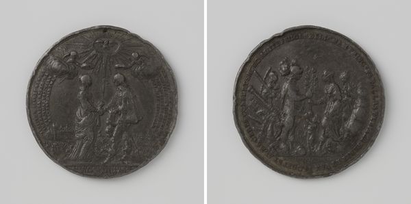 This bronze medal commemorating Frederick II of Prussia's victory over the Austrians at the Battle of Prague was produced by Johan George Holtzhey. Although undated, it belongs to a well-established tradition of state-sponsored commemorative medals. The medal presents a fascinating glimpse into the political landscape of 18th-century Europe, where warfare and territorial ambition were glorified through art. Frederick II is portrayed in profile, adorned in armor, with an inscription celebrating his name. The reverse shows an allegorical scene of the Prussian victory, with a winged figure, possibly Fame or Victory, hovering above kneeling figures, presumably representing the defeated Austrians. Medals like these weren't just about recording history, they shaped public opinion and reinforced national identity. Further study into the historical context of the Seven Years' War and the role of Prussia within it can provide a deeper understanding of its significance. The medal can be understood as a powerful tool in legitimizing Frederick's rule and promoting Prussian military prowess.