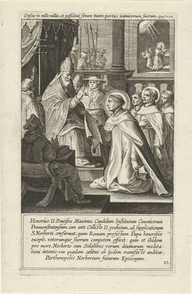 This is Cornelis Galle I's engraving, depicting "Bisschopswijding van de heilige Norbertus," now held at the Rijksmuseum. Note the central motif: the laying on of hands, a gesture laden with spiritual weight. Here, it signifies the transmission of divine authority, a ritual act of empowerment. Yet, this motif echoes across millennia, from ancient Egyptian reliefs where pharaohs receive life force from deities, to depictions of Christ healing the sick. It speaks to humanity's enduring fascination with the transfer of power and grace. Consider how the open hand, a symbol of vulnerability and receptivity, contrasts with the commanding presence of the bishop. This interplay embodies a psychological tension, a dance between submission and authority, reflecting our complex relationship with institutions and the divine. The laying on of hands is not merely a gesture; it is a conduit, channeling collective hopes, fears, and the timeless quest for spiritual connection.