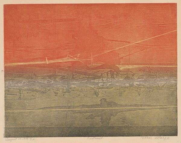 Kazu Wakita made this print, Boy and Bird, using lithography. With this process, Wakita would have drawn an image onto a flat stone or metal plate with a greasy crayon. The stone is then treated so that ink adheres only to the drawn areas, while repelling it elsewhere. Each print is then made by transferring the inked image to paper. The lithographic process allows for creating a textured and layered effect as seen in the earthy tones and subtle gradations of color. The soft texture and tonal variations gives depth to the image, evoking a sense of warmth and nostalgia. The work feels handmade because of the nature of lithography, and the imperfections that come with it. The print becomes an intimate expression of Wakita’s craft. Understanding the labor-intensive nature of lithography and the artist’s hand gives you a greater appreciation of the image. By considering the materiality and process, we recognize the artist’s labor, skill, and artistic vision, and the way those link to broader issues of labor, class, and craftsmanship.