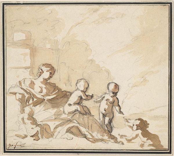 Claude Lorrain made this drawing of a satyr, a girl and goats, at an unknown date using pen and brown wash on paper. Classical imagery was a common visual language in seventeenth-century Europe, especially in academic settings and aristocratic circles. Satyrs, creatures of the forest, were stock figures in a symbolic vocabulary derived from ancient Greece and Rome. The rediscovery of classical texts and art influenced social practices, from education to politics, and the period saw the creation of institutions such as museums and academies that helped shape artistic production. Drawings like this, and landscape paintings for which Claude Lorrain is better known, appealed to educated collectors who valued the social prestige associated with classical knowledge. The British Museum, where this drawing is held, is itself a product of these same historical forces and attitudes. Art historians look at drawings like this alongside other social and cultural documents to explore how the visual language of art participates in the power dynamics of its time.