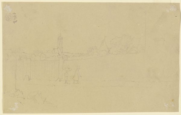 Dankvart Dreyer made this pencil drawing, titled 'Church Surrounded by Houses and Trees,' sometime in the 19th century. The church in Dreyer's Denmark wasn't merely a place of worship; it was a pillar of the community, intertwined with daily life and social order. Dreyer’s choice to depict it amidst the humble dwellings suggests a reflection on its central role. The sketch captures a quiet, unassuming scene, yet it subtly acknowledges the church's institutional presence in the landscape. To understand Dreyer's work more fully, we might delve into the archives of the Danish National Church or explore local histories of the period. Only through such investigations can we appreciate how this simple sketch speaks volumes about the social and cultural fabric of its time. The meaning of art relies on an understanding of its social context.