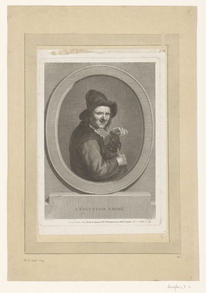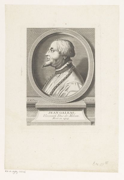Editor: We're looking at "Portret van Filips II," an engraving from somewhere between 1755 and 1765, by Sébastien Pinssio. The level of detail is striking, particularly given it's an engraving. What draws your eye in this piece? Curator: Well, darling, for me, it's the theatrical stillness. Look at him, perched just so in that ornate oval! He seems captured mid-thought, perhaps pondering weighty matters of state... or perhaps just what he'll have for supper! Do you see how the engraver has given so much volume and personality, just with strokes of a burin? Editor: The hat, definitely. It's quite the statement piece. And the way the light catches the folds... Curator: Oh, the hat is essential! A symbol of power, but also… a touch of the absurd, perhaps? Think about what he represented. Think of his choices. Doesn’t that hat suddenly have a rather heavy weight to it? I also wonder… who was Pinssio trying to *woo* with this portrait? Royalty, for favour? Or was it intended for the people to gaze upon with some measure of "awe?" What do you reckon? Editor: Hmm, good question. It does feel slightly...idealized. Like a carefully constructed image. Perhaps to cement a certain image for posterity. Curator: Exactly! Think of the stories etched, no pun intended, onto that tiny copper plate. Each line speaks, doesn’t it? From Pinssio’s hand, into our hungry gaze. I suppose there are just too many stories one might take from all of this to easily consider just *one.* Editor: Absolutely. I see so much more to it now than just a historical portrait. Curator: Isn't it marvelous when a simple image can make you question everything?