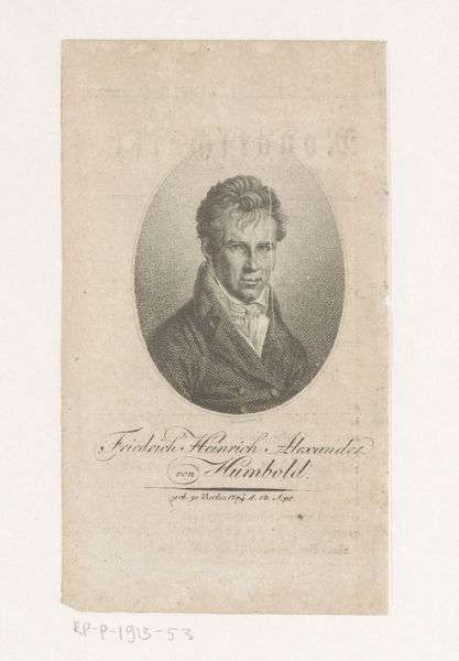 Curator: This is a print titled "Portret van schrijver en kunstenaar Alessandro da Morrona," made before 1812. The work is currently held in the collection of the Rijksmuseum. Editor: It's austere. The gray tones and the precise linework give it a severe, almost clinical quality, yet the detail is impressive. Curator: Let's look at it closer. Note how the figure is presented in a medallion format, a stylistic choice harking back to classical portraiture. We see Da Morrona set above a collection of symbolic implements. Editor: Absolutely. And there's a strong compositional balance created by the horizontal lines of the writing desk and the circular portrait above. It's a deliberate arrangement designed to frame the subject and highlight his creative attributes. Is this line style associated with any specific artistic practice? Curator: Indeed, this engraving embodies the principles of academic art with its devotion to realism and clean, precise lines. The aged paper enhances that historical feeling, adding a layer of visual texture and hinting at the passage of time. Editor: I’m wondering about its social role at the time. Portraits such as this one offered a specific declaration of one's social position and cultivated a carefully structured public identity, but there are some less-than-flattering details shown that provide this artwork an uncanny look. Curator: Portraits such as this circulated as symbols within intellectual networks, strengthening alliances and demonstrating prestige. Perhaps, the print aimed to solidify Da Morrona's legacy as both a man of letters and a practitioner of the arts. Editor: Despite its somewhat static quality, there’s something rather striking in how Aliprandi captured this creator in an environment that emphasizes literacy, intellect, and self-cultivation, all hallmarks of enlightenment values and its public intellectuals. Curator: That is a great point. Through visual semiotics, we decode the social status conveyed by a well-known writer. Editor: Thinking about the life of images, from the studio, to networks, to a public collection and into a modern audience's digital purview makes you appreciate its significance. Curator: Indeed, a fascinating glimpse into the public intellectual world, viewed now through different lenses.