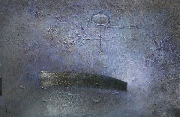 Editor: This is Lech Jankowski’s "Cultivation of Lilac Dust with the Help of Pendulum," made with acrylic paint in 2019. I’m immediately struck by its… ominous mood. It's almost like looking into deep space, but the title suggests something much more earthly. How do you interpret this work? Curator: Well, let’s consider what "cultivation" means. Usually, we apply it to plants or knowledge, something you nurture and grow. But "lilac dust?" Dust is usually the end result of things. It feels paradoxical, right? The pendulum then brings up notions of physics but also spirituality and new-age movements. What is being measured, and for what end? It could be commenting on our contemporary obsession with productivity even within the most ephemeral or intangible realms. Editor: That makes sense. It feels like Jankowski is questioning this human need to control even the most chaotic elements, and to measure unmeasurable phenomenon. Curator: Exactly. Consider also the role of abstraction in political discourse. In a world saturated with images and data, abstraction can be a powerful form of resistance, of creating space for contemplation and alternative narratives. It resists easy categorization, forcing viewers to confront ambiguity and question dominant ideologies. How might that relate here? Editor: Perhaps, it's about resisting the need for everything to be so clear cut and defined? About making room for uncertainty and even the "dust" of things. I hadn't thought of that connection between abstraction and resistance before. Curator: Precisely. By creating this strange scenario, he offers space to question systems of value. Editor: That's really opened my eyes to what abstraction can do. Thanks.