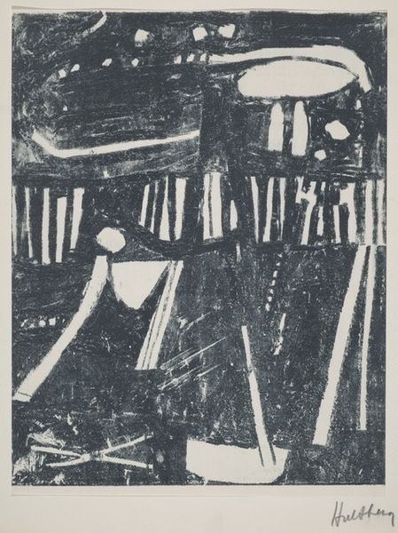 Curator: "Woman in Profile," created by Emil Nolde around 1910, is a compelling example of German Expressionist printmaking, a striking woodcut rendered in stark black and white. Editor: It strikes me as severe, almost claustrophobic. The high contrast, the compressed space... the figure appears almost trapped. Is it a trick of the light, or is there some symbolic import to this starkness? Curator: Absolutely! Nolde’s woodcuts, including this one, owe a lot to the Expressionist exploration of raw emotion. What interests me is the labor involved. Woodcut is an unforgiving medium, requiring a direct engagement with the material – the wood itself resisting the artist's intention at every turn. Look at the grain and the texture left by the tools – they speak volumes about the process. Editor: Yes, that grain is insistent! And the deep shadows, those gouged lines… it certainly contributes to the heavy mood. Considering Nolde's wider work, though, the subject’s bowed head and closed eyes also speak of resignation, a prevalent motif in his figure studies that perhaps points to an inner world beset by turmoil. Curator: Turmoil born from the pressures of a rapidly changing society, no doubt! Nolde and his contemporaries were grappling with industrialization, urbanization, the shifting dynamics of labor, all manifest in his choice of medium – the wood itself a material product subject to economic forces, wouldn’t you say? Editor: Precisely, though I might focus on how the portrait evokes broader themes of psychological isolation and societal alienation through its symbolism. Notice how her downcast gaze deflects from us; her inner experience is visually guarded and intensely private. The artist uses her pose as a key to unlock her emotional state. Curator: A key shaped by the material realities of artistic production, I’d argue. Expressionism wasn't just about subjective feeling, it was about forging a new artistic language in response to new material and social conditions. The choice of woodcut itself flies in the face of established artistic norms; elevating a craft medium to the realm of fine art, challenging established power structures. Editor: We’re largely in agreement! Whether emphasizing material means or delving into potent symbolism, it is impossible not to acknowledge the deeply disquieting impact of Nolde's print. Curator: An impact inseparable from the material act of its making, revealing something of the cultural anxieties that defined Nolde's era.