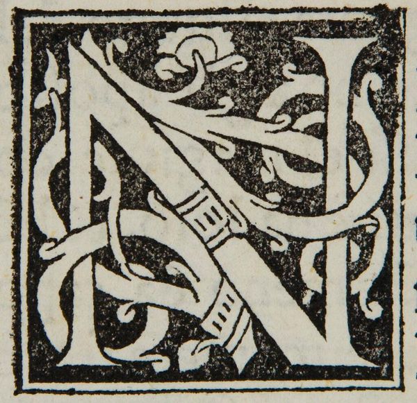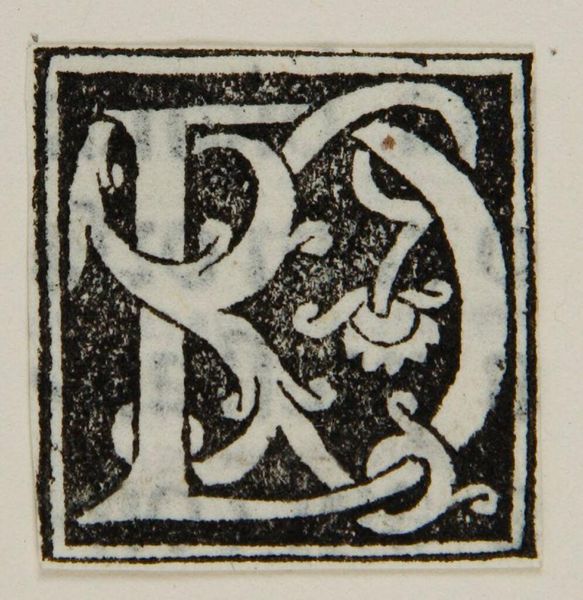 Curator: Before us is "Letter L", an intriguing initial designed by an anonymous artist. Editor: The immediate impression is one of ornate constraint – a visual push and pull between the crisp, bold letterform and those delicate, swirling tendrils. Curator: The black and white contrast certainly emphasizes its structural elements, doesn’t it? I’m drawn to the relationship between positive and negative space, the letter ‘L’ itself almost emerging from the darkness. Editor: And those floral motifs, though simple, hint at growth, rebirth. The ‘L’ becomes a foundation, a starting point for something organic. Perhaps it's related to illuminated manuscripts. Curator: It's fascinating how the artist uses these graphic elements to create a sense of depth, despite the limited color palette and apparent flatness of the printing process. Editor: It speaks to the power of symbols, doesn’t it? Even a single letter, adorned with such care, can carry layers of meaning. Curator: Indeed. This work, with its stark simplicity and intricate design, offers a world of reflection. Editor: A beautiful testament to the enduring power of visual language.