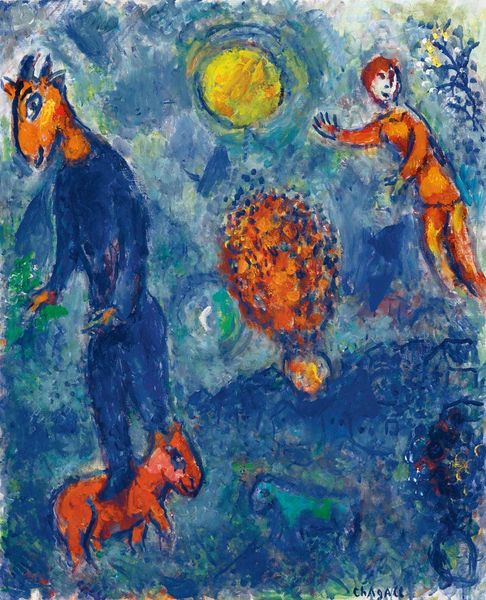Editor: We're looking at Raoul Dufy's "Still Life with Bananas" from 1909, rendered in oil paint. There’s a slightly chaotic energy to it, almost aggressive, with its clashing blues and yellows. How do you interpret this work? Curator: That chaotic energy, I think, stems from a deliberate challenging of bourgeois expectations. The Fauvist movement, to which Dufy belonged, intentionally embraced disharmony, reflecting a broader socio-political unrest. This isn't just about painting bananas; it's about disrupting established norms, questioning artistic conventions linked to class structures. Editor: So, the bold colors aren’t just aesthetic choices? They're a form of rebellion? Curator: Precisely! Think about who traditionally commissioned still lifes. These were often wealthy patrons. By using jarring colors and distorted forms, Dufy and other Fauvists are almost mocking that tradition, injecting it with a sense of the absurd and confrontational. What does this subversion communicate to you? Editor: I see what you mean. It makes me think about the shift in power dynamics happening at the time, the rising voices of the working class challenging the status quo, being mirrored in art. Curator: Exactly. It’s about giving visibility to these undercurrents and making the implicit power dynamics of art itself explicit. What about the positioning of the objects? Does that tell us something about this struggle? Editor: The bananas seem almost thrown together, not carefully arranged. It feels less about idealized beauty and more about raw, immediate experience. It resists idealizing the lifestyle or aesthetics associated with the upper classes, then? Curator: Absolutely. By refusing to create a passively pleasing composition, Dufy prompts us to actively engage with the social and political tensions simmering beneath the surface of seemingly simple fruit. Editor: That's fascinating. I initially saw just an odd still life, but now I see a whole conversation about power and perspective. Curator: It is an active protest framed by art, using color as a primary tool for social agitation.