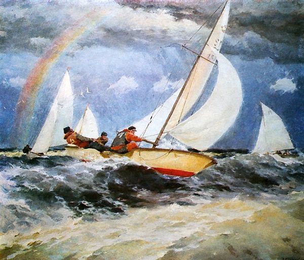 Eero Järnefelt made this painting, Kotimatkalla, with oil on canvas, but when? The date is unknown. The subtle layering of blue and brown creates a moody, watery atmosphere that I think really pulls you in. The way the brushstrokes capture the ripples of the water makes you want to reach out and feel it. Like a dance on the canvas! I am so curious about how Järnefelt built up the layers of paint in the water, from the dark, almost black depths to the lighter, frothy surface. Check out the woman’s determined face, rowing away there in the boat, framed by the muted tones of the landscape behind. Her figure adds a human element, a touch of narrative, to the scene. There’s something comforting about the simplicity of it all, a reminder that art doesn’t always need to be loud to be powerful. The subdued colour palette makes me think of other Nordic painters like Hammershoi. I think there is an elegance in restraint here, you know?