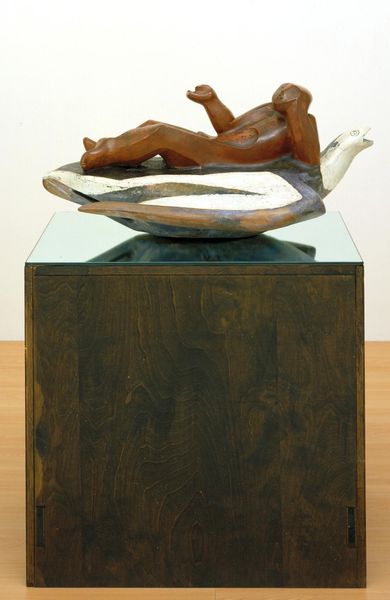 Editor: Robert Rauschenberg's "Odalisk," created in 1958, is such a peculiar object, incorporating both painting and sculpture. I'm immediately drawn to the... the audacity of it all, especially the chicken perched on top! What do you make of it? Curator: The audacity, as you call it, is precisely where the power of "Odalisk" resides. Rauschenberg is challenging our preconceptions of what art *should* be. It's not just a painting or sculpture; it's a "Combine," a deliberate collision of the high and the low. What does the title "Odalisk" evoke for you, considering its history? Editor: It makes me think of the classical reclining nude, often associated with exoticism and male gaze. But this... this is the opposite! Curator: Exactly! Rauschenberg's deliberate misnomer becomes a form of critique. The chicken, a symbol of the everyday, mocks the elevated status of the art historical canon. It questions who gets represented and how. Look closely at the images on the box – snippets of popular culture, like pin-ups, alluding to consumerism and a hyper-sexualized society. How does that complicate the reading? Editor: So, he’s not just juxtaposing objects, but also ideas. It is a collision of class, gender, and power. It seems that the feminine body is both appropriated and ironically liberated through its juxtaposition with mundane objects? Curator: Precisely! By juxtaposing the "high art" tradition with the "low art" of mass media, Rauschenberg destabilizes traditional power dynamics within the art world. How does it speak to our contemporary moment? Editor: I guess, in today’s world oversaturated with imagery, this artwork reminds us to question the meaning and intent behind every image. Also, to look closely at what or who isn't being represented. Curator: Yes, the act of challenging existing cultural narratives, which "Odalisk" so powerfully embodies, is now perhaps more relevant than ever. Editor: This was so helpful! It’s amazing to realize the many conversations a single artwork can hold.