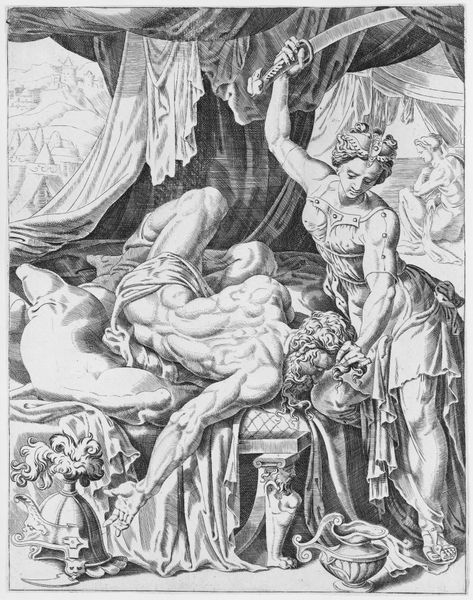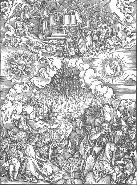 Albrecht Durer made this woodcut, "The woman clothed with the sun and the seven headed dragon" as part of his Apocalypse series. Inspired by the Book of Revelation, the image depicts a woman, often interpreted as the Virgin Mary or the Church, threatened by a dragon representing evil. Created in Germany during a time of immense religious and social upheaval, Durer's work is ripe with the visual codes of the late Middle Ages. The seven-headed dragon, a symbol of the Antichrist, speaks to anxieties about moral decay and impending doom. The woodcut medium itself, popular during the Reformation, allowed for wider distribution of such imagery, reflecting the intense religious debates of the time. Understanding Durer’s work requires us to consider the institutional history of the church, the rise of print culture, and the artist’s own personal beliefs. By delving into these contexts, using resources such as period pamphlets or theological commentaries, we can better appreciate the complex interplay of art, religion, and society in early 16th century Europe.