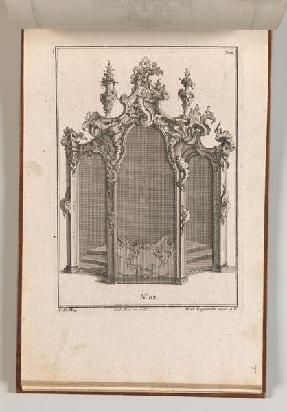 Curator: Matthias Lock’s print, “Six Sconces,” created in 1744, offers a fascinating example of Rococo design, now part of the Metropolitan Museum of Art's collection. What strikes you initially about this graphic work? Editor: The sheer ornamentation! It's as though nature has erupted into delicate, formalized curls and flourishes, completely subsuming any sense of functional structure beneath layers of embellishment. There is an almost wild energy contained within that pale ink on paper. Curator: Exactly! The engraving medium lends itself particularly well to Rococo's emphasis on intricacy. Note how Lock masterfully uses line weight to create depth and texture, mimicking the carvings of actual sconces that would have been crafted from wood or metal. Consider also the asymmetry—characteristic of Rococo—that adds to the dynamic feel. Editor: It’s as though he’s evoking the ephemeral—smoke, waves, even the way light flickers across surfaces. I also observe the curious faces worked into the design, almost hidden within the foliage. Are they mythological figures, perhaps, or something more whimsical? Their inclusion certainly enhances a sense of the fantastic, playing with notions of reality and illusion. Curator: Many designs from this period feature motifs borrowed from classical mythology and the natural world, blended with pure invention. Those masks and foliage would certainly imbue the finished sconce with a layer of cultural and symbolic meaning. They suggest a conscious aspiration to associate oneself with history, power, and even beauty, wouldn't you agree? Editor: Absolutely! This wasn't simply about illumination, but projecting status and embodying an aesthetic ideal. Though seemingly lightweight, “Six Sconces” represents significant cultural ambition. Thank you for providing fresh insight! Curator: It reminds us that graphic art, particularly prints like this, could circulate ideas and tastes far more widely. Exploring these designs gives us access to an era’s aspirations, quite unlike anything else.