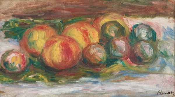 Pierre-Auguste Renoir’s oil painting, "Nature Morte, Trois Citrons Et Une Tasse," captures a fleeting moment of domestic tranquility. The still life, rendered in Renoir's signature impressionistic style, reflects the cultural values of late 19th-century France, where bourgeois life was celebrated through art and design. Renoir elevates everyday objects by using light and color, infusing the composition with an intimate, sensory quality. The lemons, symbols of the Mediterranean, and the delicate porcelain cup evoke a sense of refined taste and the pleasures of simple living. The brushstrokes might seem like a celebration of form and color, but we might also ask, is this a subtle nod to the labor involved in cultivating and producing these goods? Who had access to such luxuries, and at what cost? Through "Nature Morte," Renoir doesn't just depict objects; he invites us to consider the complex interplay between aesthetics, class, and the human experience. It's a reminder that even the most beautiful representations are rooted in a specific time and place, with social and economic implications.