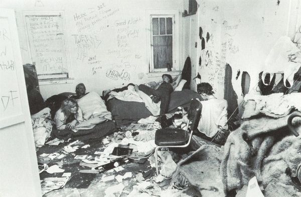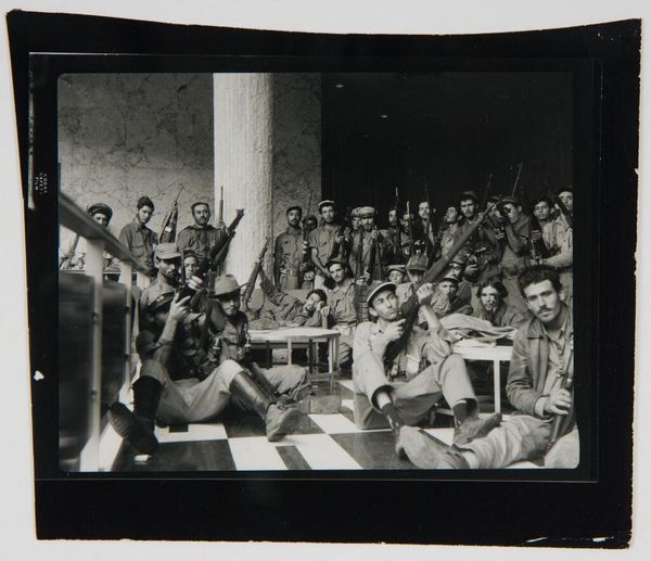 Editor: This photograph, titled "Los Angeles," was taken by Bill Dane in 1982. It's a gelatin silver print depicting a performance in what looks like an old theater. It feels very surreal, with the contrast between the somewhat dilapidated space and the striking image of a woman doing a headstand on the stage. What strikes you about this piece? Curator: It’s fascinating how Dane uses stark monochrome to amplify the sense of displacement and the layering of realities. Notice the recurring motif of the inverted body. It’s not merely acrobatic; it's a potent symbol of turning societal norms upside down. This gesture evokes ancient rituals of purification and reversal, challenging established orders. Editor: I see what you mean. The headstand draws my eye right away, almost as a symbolic inversion of the everyday. But why stage it in a setting that seems… forgotten? Curator: The derelict theater acts as a cultural container, pregnant with past narratives. The woman's performance re-animates this dormant space, inviting a new ritual of meaning-making. Consider also the photographers in the audience; they become part of the performance, documenting the ephemeral and solidifying its place in cultural memory. Do you feel there's a dialogue happening between past and present in the photograph? Editor: Definitely. It's like Dane is using the photograph itself to record the performance, and in turn the performance revives the space's purpose, and asks the viewer to interpret the action within an existing cultural landscape. The photo has this circular symbolic loop. Curator: Precisely! The continuous loop of image-making and interpretation. The layering of photographers recording the scene reinforces the piece's interest in capturing and documenting cultural shifts, right? What did you learn from that interpretation? Editor: That considering symbolism opens new ways to interpret the work! Curator: Exactly, images truly do carry emotional, cultural and psychological meaning.