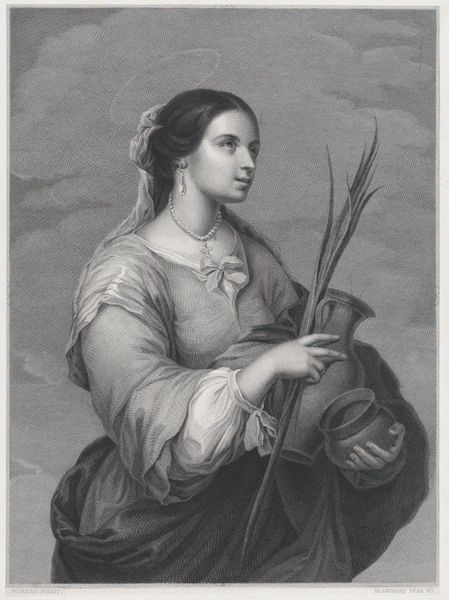 Here we have Wenceslaus Hollar’s engraving "St. Catherine of Alexandria," printed on paper, now at the Metropolitan Museum of Art. The composition immediately draws the eye to the face of St. Catherine. Note how the delicate lines of the engraving create a soft, almost ethereal quality. The contrast between light and shadow gives form to the drapery and figure. The texture, achieved through fine hatching, invites a sense of tactile engagement. The formal elements work together to create a visually rich, yet harmonious whole. Hollar's choice of engraving as a medium aligns with the aesthetic values of the 17th century, where clarity and precision were highly prized. The print embodies the era's fascination with transforming visual information into systems of signs and symbols. The texture contributes to the narrative and theological implications of the image, reflecting prevailing cultural codes. Ultimately, this engraving, viewed through a formalist lens, reveals a complex interplay of technique and symbolic representation, characteristic of Hollar’s engagement with the visual and intellectual culture of his time.