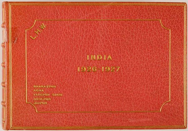 Curator: At first glance, this looks like a well-preserved artifact. Editor: Indeed. This is Leslie Hamilton Wilson's "A Motor Tour of Scotland," from 1914. It's a small book, only about 8 by 13 centimeters. Curator: The texture of the cover is striking—like fine leather. There's a sense of luxury to it, even in its compact size. The gold lettering is also very eye-catching. Editor: Absolutely. The book's existence speaks to the rise of motoring as a leisure activity for the privileged class in the early 20th century. What stories of gender, class and power does this "tour" silently record, I wonder? Curator: Considering it was created just before the outbreak of World War I, it's hard not to see the shadow of impending conflict. Perhaps a bittersweet memento of freedom before the world changed. Editor: A poignant thought. It reminds us that even travel, seemingly carefree, is always embedded in social, political, and historical contexts. Curator: It's a small object, but it opens up a whole world of questions. Editor: Precisely. It's a reminder of how objects, even personal ones, can reflect broader cultural shifts and anxieties.