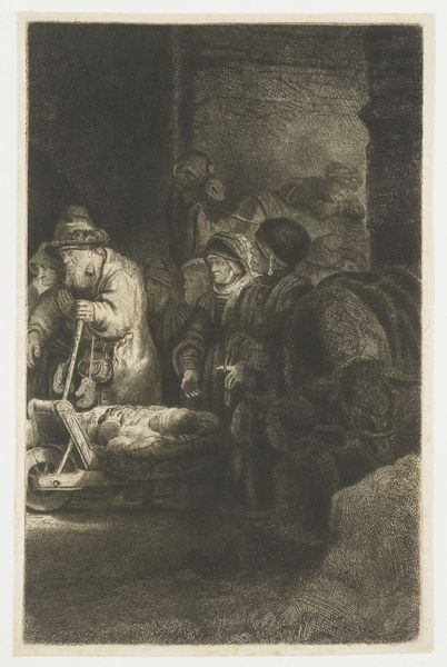 Curator: Francesco Novelli’s "Descent from the Cross" is a poignant rendering, held here at the Harvard Art Museums. You are immediately met with a dramatic scene rendered in stark blacks and whites. What strikes you first about it? Editor: The sheer labor involved in creating such intense detail. I see the cross-hatching, the density of lines—it speaks to the hours of work needed to produce this print. Curator: Exactly, and the result is this incredibly moving depiction. Novelli captures the raw grief, the heavy weight of the body being lowered. There's a kind of sacred intimacy in that act, don't you think? Editor: Absolutely, and even the texture of the shroud... it's all conveyed through the intricate work of the engraver. The social context of printmaking—its accessibility as a medium—adds another layer. Curator: Indeed, it becomes a democratized mourning. This wasn't just for the elite; it was for anyone who could access the print. It gives the work a wider resonance, I believe. Editor: I agree. Thinking about the material conditions of its creation really underscores the image's power for me. The print itself becomes a tool for shared grief and reflection. Curator: Well said. It’s an experience, really—a tactile one at that. Editor: That's right. It's a powerful testament to the intersection of skill, material, and human emotion.