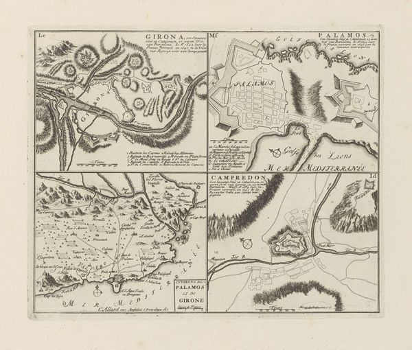 Abraham Allard etched "Arbeca en andere plaatsen in Catalonië" sometime between 1676 and 1725, capturing fortified Catalan towns. Note the prominent bastions—geometric projections from the main fortress, strategically designed to offer flanking fire and eliminate blind spots. These bastions aren't merely architectural features; they're a visual language echoing across time. Recall the star forts of the Italian Renaissance, symbols of power and control reimagined from ancient city defenses. This motif of fortification transcends mere utility, embedding itself in the collective memory of societies. Fortification takes on the power of psychological reassurance that has continued through the ages and down to modern times, in different contexts. Consider the emotional weight these images carried: in the viewer, the image inspires feelings of safety and the assurance of defenses. This representation is intended to project power, with the lines and angles suggesting strength and order. The enduring presence of the bastion motif in military architecture signals a cyclical, ever-evolving adaptation to the changing tides of conflict and security.