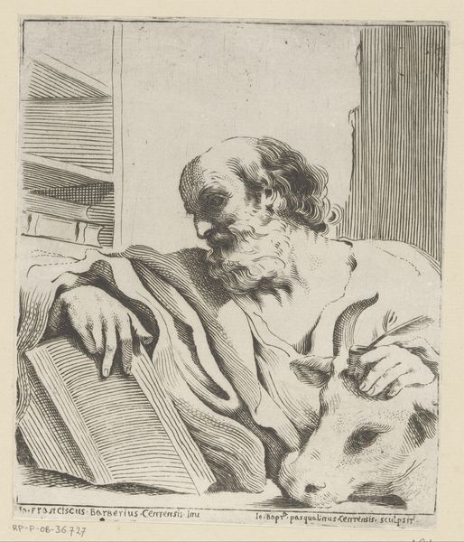 Editor: This drawing, "Oude man aan tafel" from 1914 by Elias Smalhout, appears to be made of pencil on paper. The shading creates such an interesting texture to the work, almost like looking at an etching or engraving. What do you see when you look at this piece? Curator: I’m struck by how the work draws attention to the physical realities of aging and labor, evident in the deeply etched lines of the man's face and hands. Consider the artist's choice of pencil—a readily available and relatively inexpensive material. Was Smalhout consciously reflecting a democratization of art production through this material? Editor: That’s interesting. I hadn't thought about the social implications of pencil as a medium. It makes me wonder if the choice also reflects something about the subject's economic standing. Curator: Precisely. The deliberate emphasis on materiality forces us to contemplate the broader context: the means of production, the consumption of art, and how labor is represented. Notice how the act of drawing, a process itself rooted in labor, mirrors the very subject of the work: a man worn by time, and potentially, hard work. Do you find the framing element influences this read, making it perhaps, more of a commodity for display? Editor: It’s a thought-provoking connection. Framing adds a layer of complexity. The man may be aged and weary, yet the frame seems to put this drawing "on display". So his aging, potentially coupled with labor, becomes another form of art to be commodified. It's powerful and very sobering. Curator: Absolutely. It brings us to an examination of what, or rather *who,* gets made into art, and how. Appreciating these aspects helps unlock richer meanings within art. Editor: I hadn't considered how materials speak volumes about labor, the subject, and society, all together. Thanks so much.