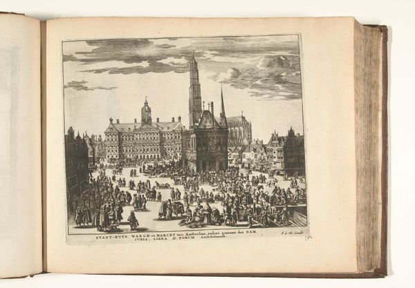 Pieter Hendricksz. Schut created this print of the town hall of Middelburg, likely during the mid-17th century. The image presents an idealized view of civic life in the Dutch Republic. At the time, the Republic was a major center of trade and a beacon of relative religious tolerance. The town hall itself is depicted as a grand, ornate building, a testament to the city's wealth and power. The inscription held by cherubs above, “Curia Mediobvrgensis,” simply names the building, as if to emphasize its self-evident importance. Look at the figures populating the square: they represent a cross-section of society, going about their daily business. Consider how the print serves as a form of civic boosterism, promoting Middelburg as a prosperous and well-governed city. To understand the print’s function more fully, we could investigate the history of Middelburg itself, its role in the Dutch East India Company, and the political dynamics of the period. The image reminds us that art is always embedded in specific social and institutional contexts.