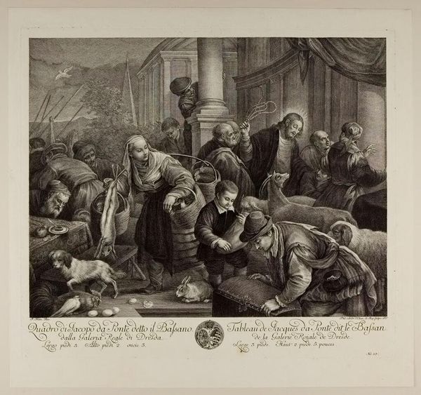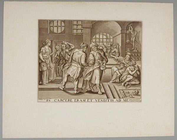Editor: This lithograph by Honoré Daumier, titled "A 1st Performance," captures a rather crowded theater scene. The perspective is interesting, almost claustrophobic. What strikes you most about the composition of this image? Curator: The artist employs a masterful use of line and form to convey depth and social commentary. Note how the figures are rendered with varying degrees of detail, guiding the viewer's eye. It's a study in tonal variation, wouldn't you agree? Editor: Absolutely, the contrast draws you in! I hadn't considered how deliberately that was constructed. Curator: Indeed. The artist uses formal elements to create a visual hierarchy. An interesting formal approach to a social subject. Editor: I'll definitely look at lithographs with a fresh perspective now.