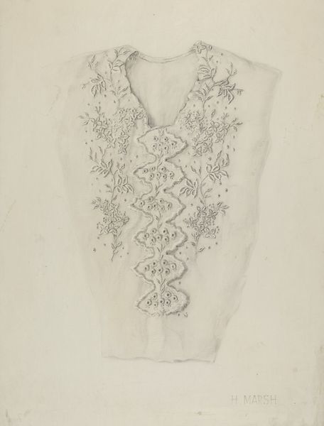 Editor: Here we have "Headdress," a pencil and watercolor drawing by Eva Noe, from around 1937. It feels so delicate, almost like a whisper from another era. What stands out to you in this piece? Curator: Well, first off, that ghostliness. It’s a sketch, yes, but it hints at a life, a performance. Notice the unfinished quality, like a half-remembered dream or a costume fitting abandoned mid-scene. Editor: I see what you mean! The missing face definitely adds to that sense of incompletion. Curator: Precisely! The vacant space compels us to imagine. Who might wear this powdered wig? What grand pronouncements might they make? Consider the historical context – the late 1930s, as war loomed. Was this escapism? A longing for the opulence of a bygone era to ignore the future's grim uncertainty? Editor: So, almost a form of fashionable denial? Curator: Perhaps. Or maybe a simple appreciation of form, the elegant curls, the delicate shading… Sometimes, the act of creation is enough, divorced from deeper meaning. What’s your gut reaction? Editor: Initially, I saw just a pretty drawing, but I think I overlooked its complexity and what it represents, not just in the aesthetic sense, but also culturally and historically. Thanks, it’s a fantastic piece for me to look back on. Curator: Precisely! That's the magic, isn't it? The layers waiting to be uncovered, like secrets in a dusty attic.