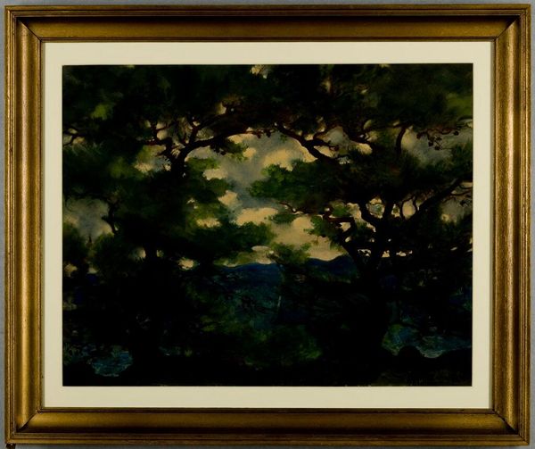 Curator: This watercolor on paper is titled "Pemigewasset, New Hampshire," created by Charles William Hudson. Editor: It's... brooding. That deep green pressing against the lighter, almost hesitant sky. Makes you want to bundle up and watch a storm roll in. Curator: Absolutely. Hudson’s landscape painting intersects with environmental history and the romanticization of nature, particularly regarding depictions of the American Northeast. Editor: I get a sense of yearning, too. Maybe Hudson was tapping into a cultural desire for untouched wilderness even back then. Before it all became postcards. Curator: Precisely. His art is a visual argument—a statement about the value we place on preserving natural landscapes. Editor: It's a reminder that even beauty can carry a weight. I'm left pondering the legacy we leave behind.