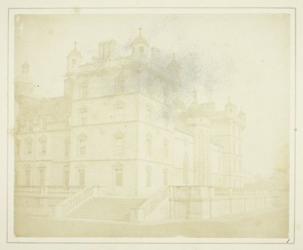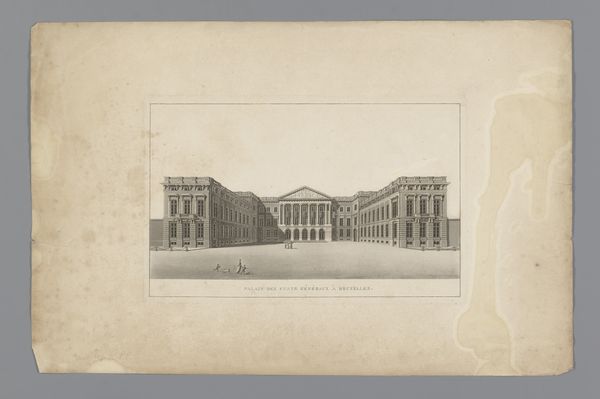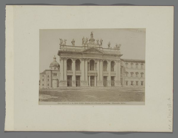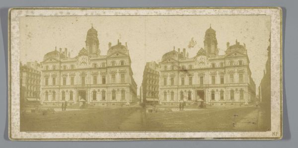 Curator: Welcome! Let's take a moment to observe this intriguing piece, titled "Gezicht op La Madeleine in Parijs." It's believed to have been created sometime between 1850 and 1880. What strikes you initially about this rendering of the Parisian landmark? Editor: It's bathed in sepia tones, isn't it? An almost ghostly representation. The effect of the paper makes it feel like we are looking back not just at a place, but at memory itself, specifically at a city being deliberately constructed. Curator: That’s an interesting take. Indeed, the choice of watercolour and colored pencil on what appears to be aged paper creates that immediate sense of historical distance. Consider, the grandeur of La Madeleine itself, its neoclassical design a statement of imperial ambition under Napoleon and later monarchies. How does the medium speak to this grandeur? Editor: I wonder about the access inherent to these types of images as historical documentation versus, say, a painting made for an elite patron. How does the proliferation of images of La Madeleine affect its meaning for Parisians of different classes at this moment in history? The image making the landmark more approachable? Or, does the muted palette of the watercolor render this kind of accessibility, but, in fact, produce an alienation because the work doesn't have the vivacity we associate with public art? Curator: Absolutely, and it's key to remember that photography was burgeoning around this time. Images like this—likely reproduced—democratized the visual consumption of monuments like La Madeleine. They were more readily disseminated than paintings, shaping a shared visual culture. What’s compelling here is considering who might have acquired such an image. Was it part of a collection, a memento for a traveler? Editor: Precisely. We're speaking about accessibility, and I am curious about the type of viewing encouraged here: what narratives do images like these endorse by romanticizing a historical monument? After all, such monuments speak to an entire imperial history filled with state violence. How does the distance aestheticized here affect the viewer and their perspective on Parisian city planning itself? Curator: I see your point. While offering accessibility on one level, the artistic style might inadvertently gloss over the complex realities of urban life. Editor: Yes, this is the point. In my view, its appeal is inextricably bound up with its politics. It's important for audiences to engage with this artwork and consider what histories might be erased with the wash of watercolor over aged paper. Curator: Thank you, those are incredibly insightful observations about power dynamics in image production. Hopefully, viewers will be spurred to analyze what the reproduction implies when understanding broader political conditions. Editor: Indeed. Perhaps thinking about access and power, we may more critically engage with representations of monuments and the forces which produced them.