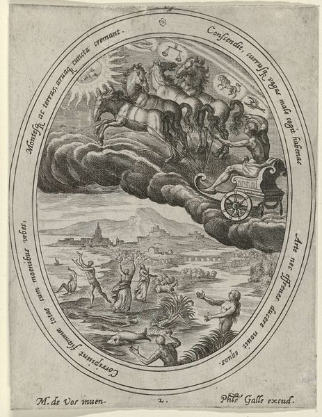 Philips Galle engraved this print of Phaëthon and Apollo sometime between 1580 and 1612 in the Netherlands. It illustrates the classical myth of Phaëthon, who begged his father Apollo to let him drive the sun chariot, only to lose control and scorch the earth. The image creates meaning through its visual codes and cultural references. Galle was working in a time of great artistic and intellectual exchange. The flourishing print market enabled the wide dissemination of classical stories, rendered in a style that combined Northern realism with Italianate grace. As a result, this print reflects the humanist learning that was prized in elite circles, but also served a moralizing function, warning against hubris. To understand this image better, we might consult emblem books, classical texts, and the inventories of print collectors. In doing so, we can appreciate how art served as a vehicle for social and intellectual exchange in early modern Europe.