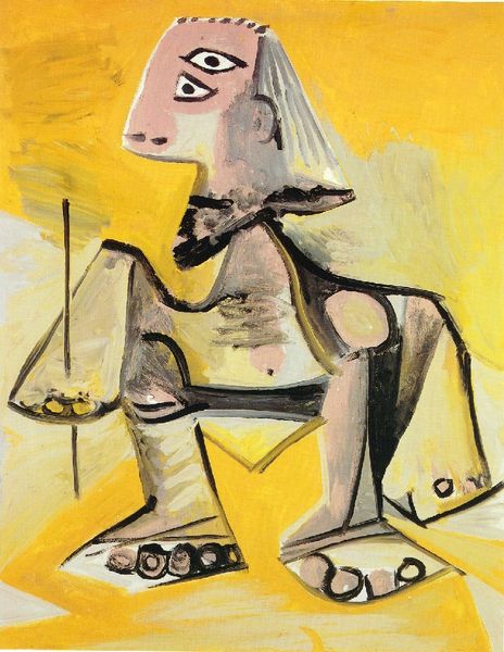 Dimitris Mytaras painted "Woman in the Mirror" using a vibrant palette and bold outlines. The composition is structured around contrasts. The figure’s warm yellow top and blue stockings are set against a background of cool tones and vertical stripes. This juxtaposition creates a dynamic tension. The mirror image, rendered in pale blues, offers a softened, idealized version of the woman. The starfish in the woman's hair seem to question conventional beauty standards. Mytaras's layering of images and styles challenges fixed perspectives and invites us to question the nature of identity and representation. It reminds us that art is not just about seeing but about interpreting.