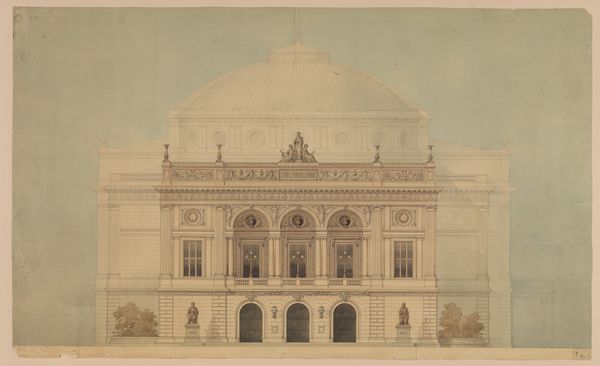 Giuseppe Valeriani created this architectural study with pen and brown ink, and gray wash on laid paper, sometime between 1708 and 1761. Valeriani lived and worked in a time when the power of the Roman Catholic Church was still very present in Italy, and this building’s design suggests that he may have been working on a commission for them. Though this study is not a finished artwork, we can see the artist’s process as he renders his vision in great detail, particularly in the central portico. Note the statues in their niches, elevated and set apart from we, the viewers, might be, should this building ever exist in three dimensions. One can imagine approaching this building, and feeling awed and humbled by the imposing structure. The clock tower looms large at the top of the structure, subtly reminding us of the power of the Church, its traditions, and its lasting influence through time. As you reflect on this artwork, consider the power dynamics inherent in architecture and how they shape our perceptions of authority.
