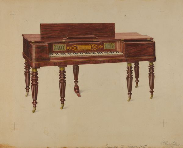 Dorothea Farrington made this drawing of a desk, we don't know when, using watercolour, graphite, and coloured pencil on paper. There's something so intimate about the way Farrington has rendered the wood grain, the shadows and highlights, it's like she’s really *looking* at this thing. The palette is muted but warm; browns, creams, and just a hint of red. Look at the way she’s used thin washes of colour to build up the form. You can almost feel the texture of the wood, which is quite something when you consider this is just graphite and watercolour on paper. Take a closer look at the handles, it's clear she really laboured over the details. The whole drawing is an act of care, of quiet attention. It's like a love letter to this everyday object. In this way, it’s got something of the same spirit as Agnes Martin, a quiet, meditative quality that belies its simple subject matter. It's an invitation to slow down and really see.