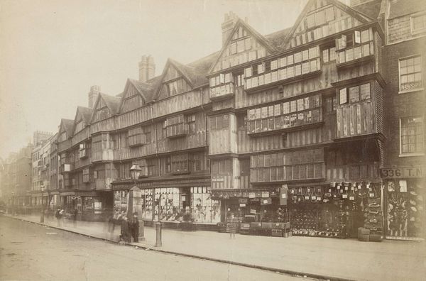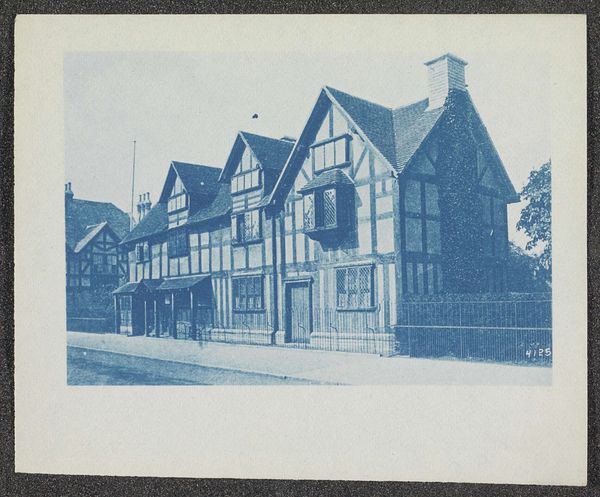 Curator: Looking at this albumen print, "Shakespeare's House from the West", taken around the 19th century by Francis Bedford, I'm struck by its remarkable detail. Editor: It has an austere charm, doesn't it? Almost staged. The light seems unnaturally even. Like a perfectly presented dollhouse for the literary giants. Curator: Precisely. The albumen process was meticulous, requiring skilled labor in coating the paper, exposing the image, and then meticulously developing and toning. It's about the industrialization of image-making meeting architectural romanticism. Editor: I can imagine the photographer setting up their equipment, perhaps even directing passersby. The house is set back far from the camera – emphasizing a public experience of what would normally be domestic space. Makes one consider notions of access and ownership! Curator: Yes! Bedford made several photographs depicting significant British landmarks. He reproduced these and many images like it to satiate rising levels of heritage consumption at the time. What does it say about our own desires to possess a past through images? Editor: To consider owning such weighty history! But it looks lonely doesn't it? The gate, while ostensibly a public display of architectural admiration, cuts the image off, making its rich interior and former inhabitants ultimately inaccessible. Curator: And how this house became an emblem? This connects to ideas about the marketing of a national, even global, identity around Shakespeare as a brand. It's a tangible thing reduced into symbolic cultural capital. Editor: Interesting, the limitations that photographic reproduction offers! You’ve brought such illuminating insights today. Curator: It's been a pleasure reflecting on how social context shapes and is shaped by these material processes of creation and consumption.