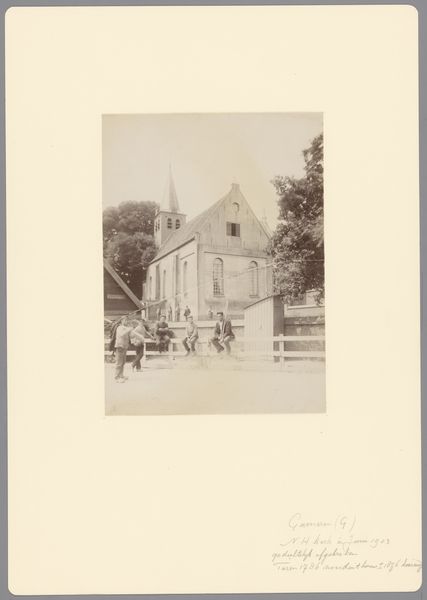 This monochrome photograph shows the ‘Gezicht op de Oude Kerk te Oosterbeek’ made by an anonymous photographer. It’s a beautiful shot of a rural church, emphasizing composition over detail. I’m drawn to the grainy texture, like a memory softened with time. The neutral palette has a calming effect, inviting contemplation rather than confrontation. It reminds me of Agnes Martin’s work in its simplicity. The whole image is about suggestion, making it open to interpretation. The photograph emphasizes the play of light and shadow, giving the church a ghostly presence. It's as if the photographer wanted to capture not just a building, but a feeling – a moment of quiet reflection. You can see it as a conversation about the nature of time and memory.