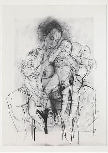Carmen Delaco painted ‘The Five Children’ with what looks like oil on canvas, but there's no date on it. She's dealing with the materiality of oil, pushing it around, letting it drip and stain. I like the way the paint is thin, almost translucent in places, and then thick and clotted in others. Look at the way the eyes of the children are blank, almost empty, whilst the redness of the skin is built up through multiple layers of paint. I think there is something about the tension between the representation of the body and the paint itself that is deeply compelling. It reminds me of Marlene Dumas’ earlier works, where she used thin washes of paint to create a sense of fragility and vulnerability. Like Dumas, Delaco is interested in how we can use paint to explore difficult and painful subjects. Art doesn’t have to be pretty, it can be messy and raw and still be beautiful.