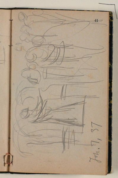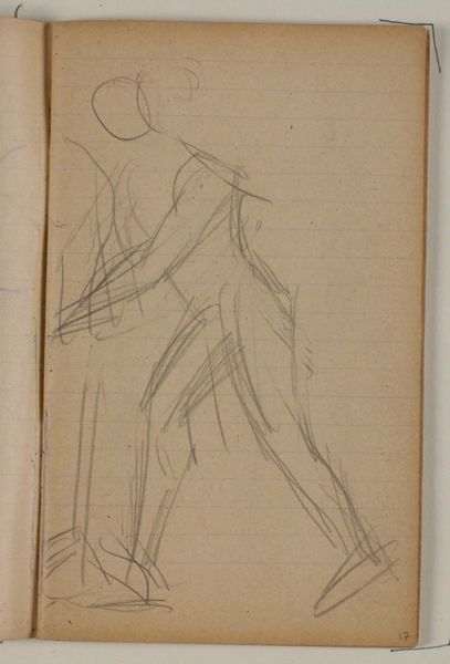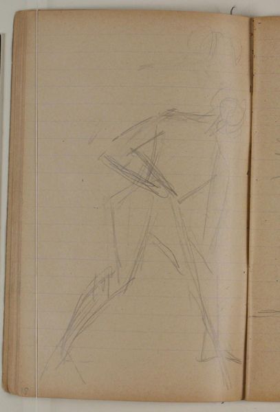 Editor: Here we have Niels Larsen Stevns' "Skitser til reliefferne på Hjørring centralbibliotek," created between 1930 and 1938, using pencil on paper. It’s currently held at the SMK. These initial sketches have a rough, almost urgent energy, but what is its symbolic message? Curator: Niels Larsen Stevns appears to be delving into the core of human toil here. Notice how the lines depict a figure bowed forward, possibly under a great weight or burden? Is that a circular shape that might be an orb? It speaks to me of physical labor and perhaps broader societal strains during that era. The library context then offers new interpretations of wisdom, shared burden, knowledge sought and embodied through labour. Editor: That's fascinating! The circular shape, the orb, it looks both weighty and maybe luminous… What feelings did Stevns try to convey? Curator: Perhaps Niels Larsen Stevns intends to remind us that all progress, whether intellectual or societal, stems from labor and the constant turning of the wheel, illuminated by knowledge. The symbolism is really open to individual reading, coloured by experiences and background. What’s your own visceral reaction? Editor: It feels stark. This work asks you to meditate on this connection between our ancestors, the books, the people… Thanks! Curator: It also speaks to how visual shorthand and archetypal images—in art—serve to preserve societal memory and emotional intelligence through time, linking the present with layers of shared experiences. That has me reflecting about art and cultural memory now!