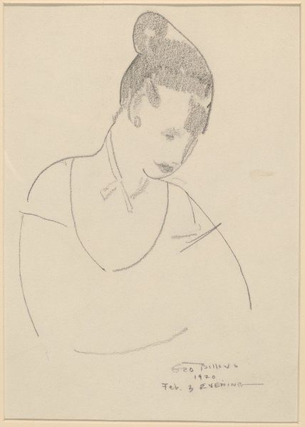Curator: Before us, we have "Femme Endormie", a pencil drawing by Théophile Alexandre Steinlen. What are your initial thoughts? Editor: A hushed intimacy. The piece is delicate, fragile almost, like capturing a fleeting moment of respite. Curator: Indeed. The subtle shading achieved through the graphite gives the figure form. The choice of pencil suggests a more immediate, personal interaction between the artist and his subject, perhaps bypassing the formal processes associated with larger-scale commissions. Editor: Precisely. Observe the composition; the artist frames the subject in profile, the contours are soft, and the absence of bold lines creates a gentle sense of tranquility, but notice that her neck extends toward the viewer ever so slightly. The artist may be imbuing this otherwise serene portrait with some quiet tension. Curator: That's an interesting observation. I am compelled to think about the means of production and consider where Steinlen may have sourced his materials. Graphite became increasingly accessible during this period. Its usage democratized art-making to some degree. This piece could reflect that societal shift, making art from inexpensive resources more accepted. Editor: Perhaps, but I am also interested in how the light plays across the planes of her face. Steinlen manipulates line and tone so subtly to draw attention to specific features. Curator: Agreed. Steinlen was indeed incredibly skilled. It certainly provides a captivating, intimate glimpse. Editor: The interplay of shadow and form speaks volumes without the need for extravagant displays or superfluous detail. Curator: It’s incredible how this simple material evokes such strong sense of intimacy and stillness. Editor: A study in how line can convey profound emotion, ultimately.