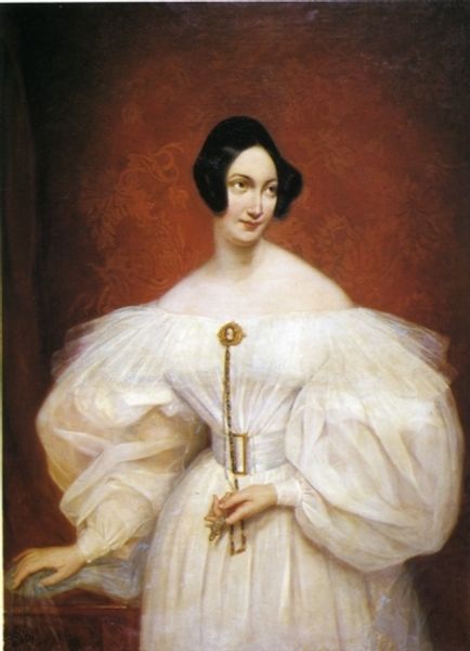 Editor: Here we have Mrs. Samuel L. Waldo, painted between 1823 and 1826 by her husband, Samuel Lovett Waldo. The muted colors give it a sort of solemn mood, don't you think? How do you read this portrait? Curator: It is a striking piece, particularly when we consider it within the social framework of its time. A portrait such as this was more than just an image; it was a carefully constructed statement of identity, status, and power. Considering it was painted by her husband, how might the dynamic between artist and subject have influenced the final image? Editor: I suppose there might be a desire to idealize his wife or emphasize certain qualities... Curator: Precisely! Think about the limitations placed upon women of that era, the expectations surrounding their roles in society and marriage. Does this portrait subvert or reinforce those expectations, do you think? Consider her gaze, her attire, and the overall impression of her character. Is there anything empowering about it, or does it reflect the constraints of her position? Editor: I see her face now, and I do feel like there’s some kind of knowing defiance in her gaze...It doesn’t quite fit into this “idealized woman” trope… maybe a subtle resistance? Curator: It is open to interpretation, but your reading brings a fresh perspective! And it begs the question of the role the male gaze played in representations of women throughout art history. What might a contemporary female artist do differently? Editor: I see how studying art gives a new way to understand the culture of the time and relate it to issues that matter today. I am definitely going to think about portraits in a new way from now on. Curator: And art, by extension, becomes a dialogue between then and now, between power structures and their potential disruption.