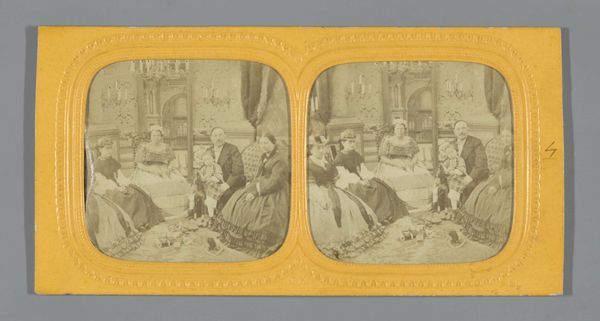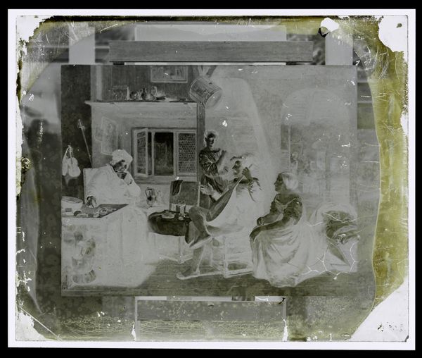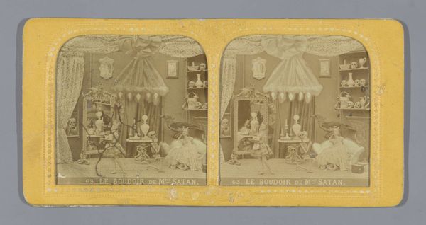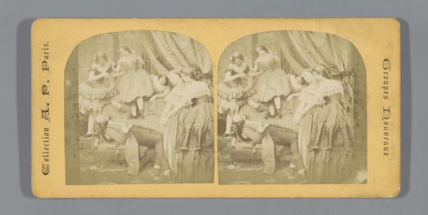 Curator: This photograph, entitled "Vrouw kleedt een andere vrouw," or "Woman Dressing Another Woman," dates from between 1858 and 1875 and the artist is, alas, unknown. It’s quite difficult to say anything definitive about its background. Editor: What strikes me is this hazy, dreamlike quality. It’s like peeking into a secret, intimate moment, but the fog makes it feel strangely distant. There’s something so incredibly touching in that vulnerability. Curator: The softness you perceive likely comes from the photographic processes common at that time. Albumen prints, like this one, involved coating paper with egg whites, creating a smooth surface to hold the photographic emulsion. It makes the detail fuzzy. The very act of preparing and staging such images also reveals details about material consumption and performance of feminine ideals, doesn't it? Editor: Performance definitely hits it. It feels carefully posed, a constructed reality. Like a scene from a play... It whispers of whispered confidences and hidden beauty rituals. Maybe these weren't actually the activities that ordinary women did in everyday life, but instead an elite staging of how such women did what they did, or what was presumed they did... Curator: Precisely! The presence of such staged images indicates, on one level, how the act of labor and class were performed and interpreted through social mores that came to define entire eras. These types of images had the effect of further defining lines of gender and class. Editor: In the context of the romanticism movement...it’s lovely to let oneself dream a bit here in the process. If photography offered, maybe unintentionally, access to hidden lives, what better opportunity is there for flights of imagination and projection? Even when it’s mediated through an antique technology of reproduction? Curator: An interesting viewpoint to say the least. The photographic technology also makes plain that photography in and of itself should not be taken for granted; like the figures depicted in it, images too undergo complex processes. Editor: This piece, for me, is a delicate echo, hinting at secrets just beyond our grasp, made possible by the era. Curator: It truly prompts us to reflect on photography’s early days and their influence on defining gender and status via constructed images.