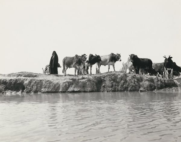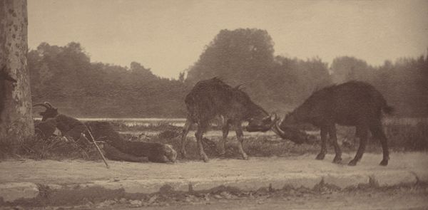 Ursula Schulz-Dornburg made this image on paper, a landscape with beasts. The gray tones here aren't just shades; they're like emotional weather, each one a little different. Look at how the dark mass of the buffalo in the foreground contrasts with the watery scene behind. It's so flat, almost like the animals are pasted onto the landscape. The texture, that's where it gets interesting. The straw looks like dry paint strokes. That one animal standing, its body a silhouette, feels like a question mark. It makes you wonder what's solid, what's floating, what's real. It reminds me of a Cy Twombly painting, where lines and marks hover between meaning and pure gesture. Art isn't about answers, it's about the questions we bring to the surface.