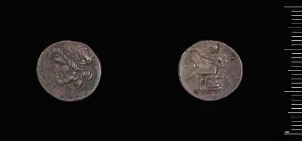 Editor: Here we have the Drachm of Ariobarzanes I. It's a small, silver coin, seemingly worn with age and use. What can you tell me about it? Curator: The creation of currency reveals volumes about a society’s material concerns. How was the silver sourced and processed? Who controlled the minting process? The images are telling; they acted as propaganda, shaping social narratives. The coin embodies power relationships. Editor: So, it’s less about aesthetics and more about its function within society? Curator: Precisely! Consider the labor involved, the value assigned, and how its circulation impacted daily life. It's a material object deeply embedded in its economic and social context. Editor: That definitely gives me a new perspective. I never thought of a coin having so much to say about production.