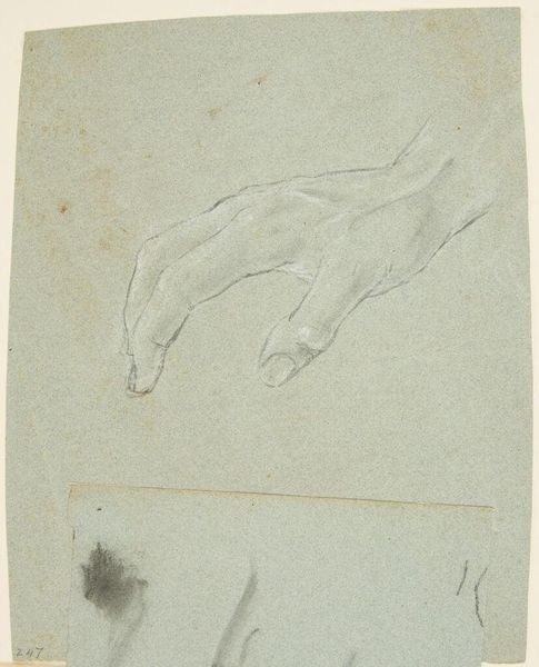 Curator: Here we have Washington Allston’s study, "Right Knee and Foot for 'The Angel of Wrath'," a pencil drawing now residing at the Harvard Art Museums. Editor: It's stark, almost ghostly. The lines are tentative, and the knee joint seems heavily weighted against the ethereal foot. There's an unresolved tension there. Curator: Allston worked on "The Angel of Wrath" for decades. It’s fascinating to consider this fragmented body part within the context of the larger, unfinished painting—and the role of divine retribution that the figure embodies. I think it highlights the struggle to fully realize such a monumental and morally complex figure. Editor: Yes, Allston's project was ambitious, arguably impossible. A single knee and foot become synecdoches for the burdens of representation, perhaps a comment on how institutions and systems attempt to constrain such creative endeavors. Curator: A compelling thought. The drawing, detached from its intended purpose, gains a potent meaning of its own, speaking to artistic ambition and the weight of history. Editor: Indeed, and perhaps to the weight of our own critical expectations. It's a reminder of the human struggle behind grand artistic visions.